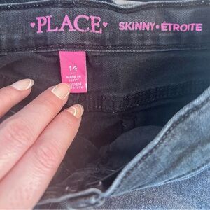 Chic skinny jeans by Place. Charcoal fabric with distressed details. Perfect for any occasion from school to casual gatherings.