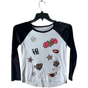 Place T-Shirt Womens Size XL 14 Bee Stars Heart Wings Patch Raglan Velvet Sleeve