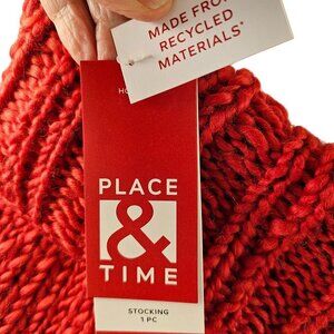 Place Time Large Red Cable Knit Christmas Stockings 21x12 Recycled Polyester NWT