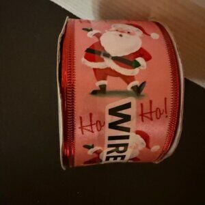 Place & Time-Holiday Santa HoHoHo Wire Edged Pink Satin Ribbon - 2.5"W x 8.33Yds