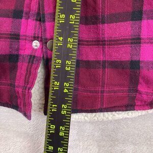 Place Women's Shirt Jacket XXL Burgundy Sherpa Lined Flannel Shacket Snaps Plaid