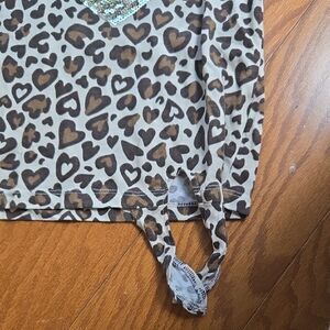 This casual tee from Place features a chic brown and gold color palette with a trendy tie detail at the bottom hem. The short sleeves and soft knit material make it perfect for everyday wear, while the stylish design adds a touch of flair to any outfit.size 4