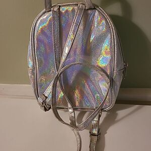 Pre-owned in good condition. Silver holographic backpack with a heat pocket on the front decorated with a Llama, heart and the word LOVE. No lining issues.