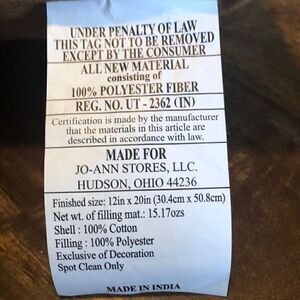 Caramel and canvas beige. Piped edges. From Jo-Ann Fabrics. Poly fill, cotton fabric.
