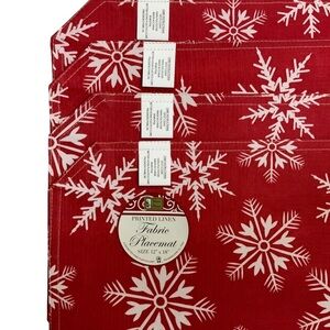 Christmas Holiday Placemats Linen Print Fabric Snowflakes Red White 4