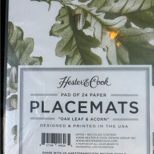 Placemats Hester & Cook. Oak Leaf & Acorn. Pad of 24 paper. 18" x 12"