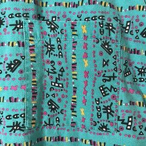 Placements Women’s Teal Peruvian Patterned Crop Shirt missing size tag see measurements below.