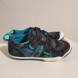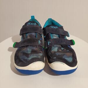 Plae Kids TY Blue Camo Sneaker Shoes Size 2.5C Suede Nylon Hook & Loop Straps
