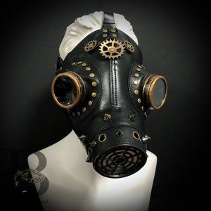 Plague Doctor Mask Black and Gold Gears
