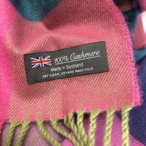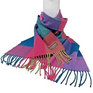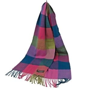 Plaid 100% Cashmere Scarf Fringed Preppy Colorful Pastel Soft Made in Scotland