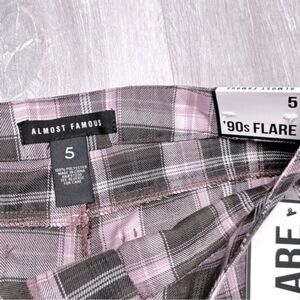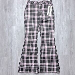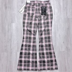 Size 5 pink and brown plaid flared pants. New with tags. Waist 15in. Inseam 30in. Rise 11in.