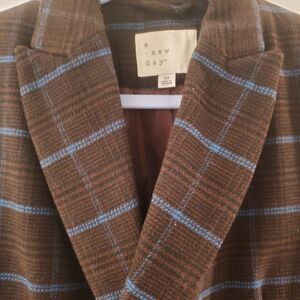 Brown plaid belted coat with blue detail. Coat is in perfect condition.