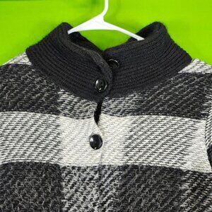 Plaid Black & White Button-Up Sweater With High Collar Mohair