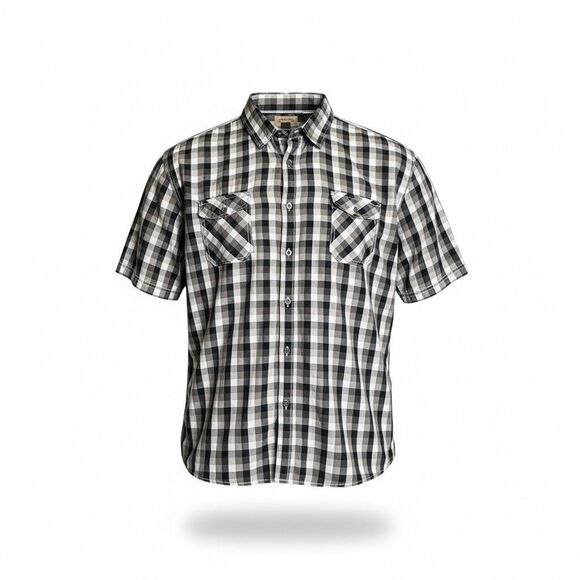 Plaid Black & White Men's Fish Short Sleeve Shirt by Sonoma Size XXL Pre-owned