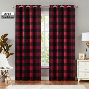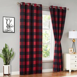 Buffalo Check Plaid Blackout Curtains 84 Inches Long for Bedroom, Living Room Thermal Insulated Room Darkening Grommet Drapes, Black Red, 50 x 84 Inch, 2 Panels