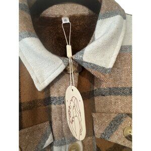 Plaid Brown & Beige Button-Up Jacket With Pockets XL