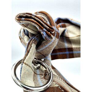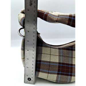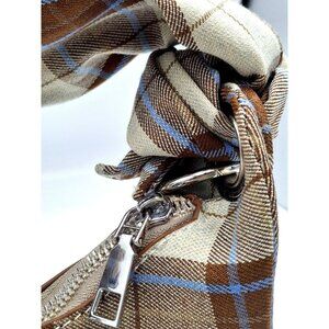 Plaid Brown & Beige Knot Handle Shoulder bag With Silver Hardware & Zipper