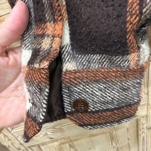 Stay stylish and warm with this plaid men's jacket. Featuring a classic brown and orange design, this jacket is perfect for any casual outing.