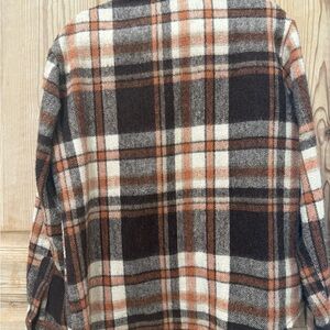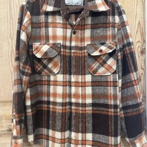 Stay stylish and warm with this plaid men's jacket. Featuring a classic brown and orange design, this jacket is perfect for any casual outing.