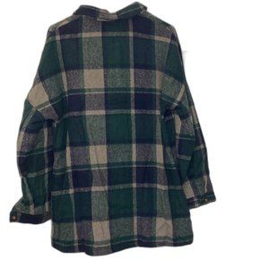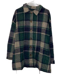 Plaid Button Up Flannel Jacket Green Women Size Medium NWOT