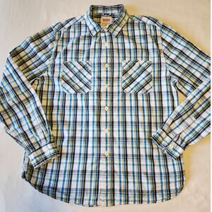 Plaid Button up Men's size Large Shirt Levi's Country Western Blue 100% cotton