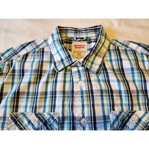 Levi's Men's Button Blue Plaid shirt size Large 100% cotton Long sleeve - Menswear