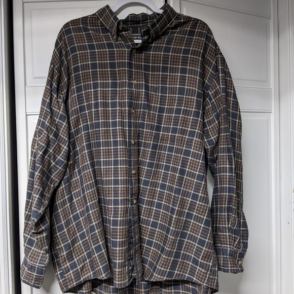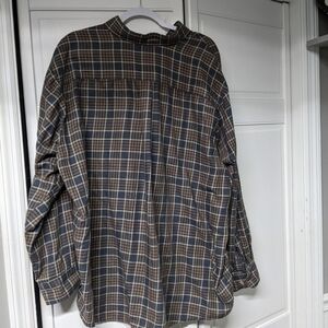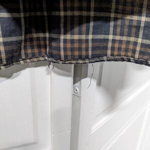 Plaid button up, softer material. tiny bit of threading at bottom as shown but no other issues