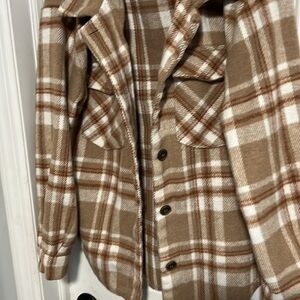 Stylish plaid jacket. Features button-up front. Perfect for layering. No tag but brand new never worn.