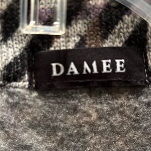 Stylish plaid button-up jacket with large collar and pockets. Features a mix of purple, black, gray, and cream colors.
