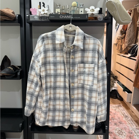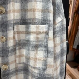 Stay stylish with this plaid button-up jacket, featuring a classic design perfect for any occasion. The soft fabric ensures comfort, while the neutral colors make it versatile for pairing with various outfits.🤍
