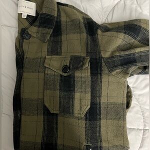 Lucky Brand shacket featuring a versatile green and black color scheme. In great condition. Has 2 pockets on the side and 2 chest pockets. Men’s Medium