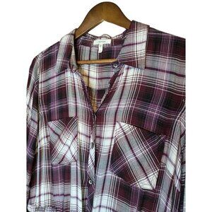 Stylish plaid shirt dress with a button-up front and adjustable waist tie. Perfect for casual outings.