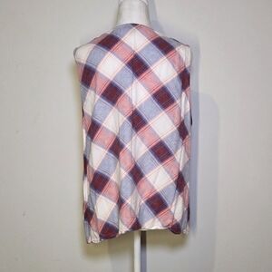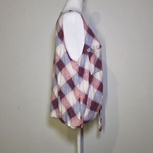 Stylish plaid button-up top with a tie-front design. Perfect for casual outings.