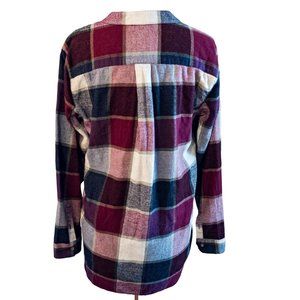 Stylish plaid tunic top featuring a button-up design. Perfect for casual outings.