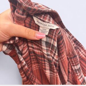 American Eagle plaid flannel! Fits super oversized, SIZE S but could also fit a M depending on what look you’re going for!