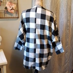 Perfect for wearing to the pumpkin patch! Black and white plaid cardigan with 3/4 length sleeves. Never been worn, was bought from the online boutique Belilly so it has no tags. It is a light weight material and is great for fall!