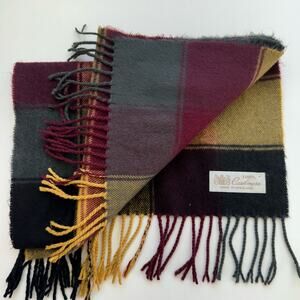 Plaid Cashmere Oblong Scarf Made in England Fringe Trim Brown Yellow Black