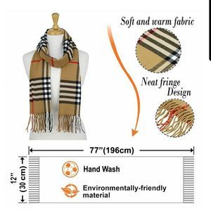 Hashtags: #PlaidScarf #CamelScarf #CashmereFeel #LuxuryScarf #FashionAccessory