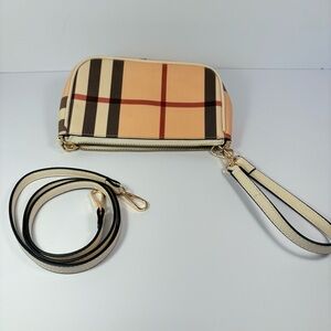 Plaid Checkered Academia Preppy Beige Clutch Strap Crossbody Purse