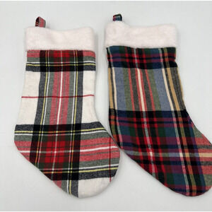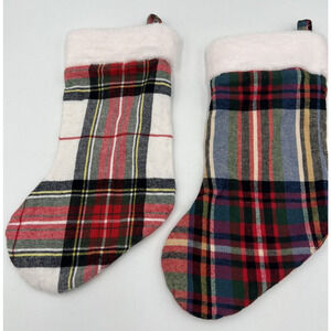 Plaid Christmas Stockings w/ White Plush Rustic Country New Lot of 4
