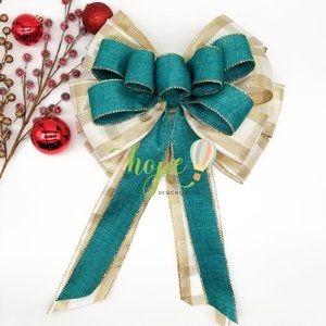 Plaid Christmas bow. Lantern, Wreath, Centerpiece, Christmas tree topper, Gift.