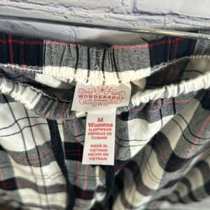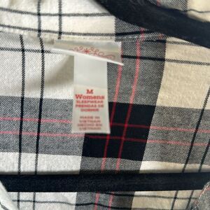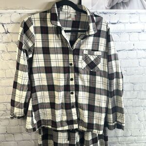Get cozy this holiday season in these classic plaid Christmas pajamas. Featuring a long-sleeve button-up top and matching drawstring bottoms, these pajamas are size medium and in perfect condition. The traditional plaid pattern exudes a timeless holiday charm, making them ideal for festive nights in or for that special Christmas morning.