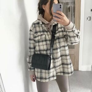 Plaid Collared Shirt Jacket Shacket H&M Oversized Fit New
