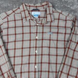 Plaid Columbia Long Sleeve Button Down Shirt Size XL Tan Orange Gray