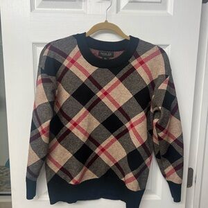Rachel Zoe plaid crewneck sweater with a classic design. Super cozy material with a mix of black, red, and tan colors.