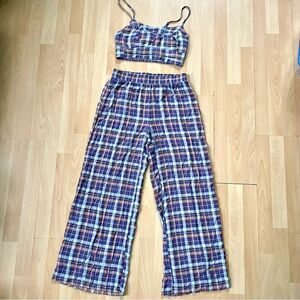 Plaid Crop top Cami, matching Plaid Wide Leg Pants, Loungewear coord set pjs S