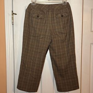 Plaid Cropped Pants Career Casual Brown Tan Checkered Trousers