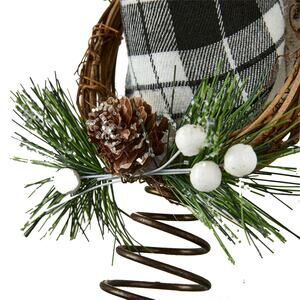 * Black & White Plaid Deer Head Christmas Tree Topper, 11.5 inch