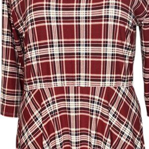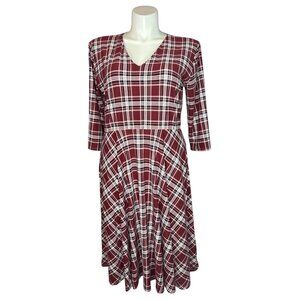 Plaid Fit & Flare Dress Plus Size 3X Burgundy Checkered Midi Fall Winter Outfit