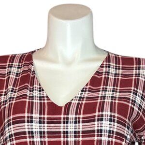 Elevate your wardrobe with this plus size plaid fit & flare dress in a rich burgundy checkered pattern. Designed for comfort and style, it features a flattering V-neckline, 3/4 sleeves, and a flowy midi-length skirt perfect for all-day wear. The stretchy fabric moves with you, making it ideal for work, casual outings, or seasonal gatherings.